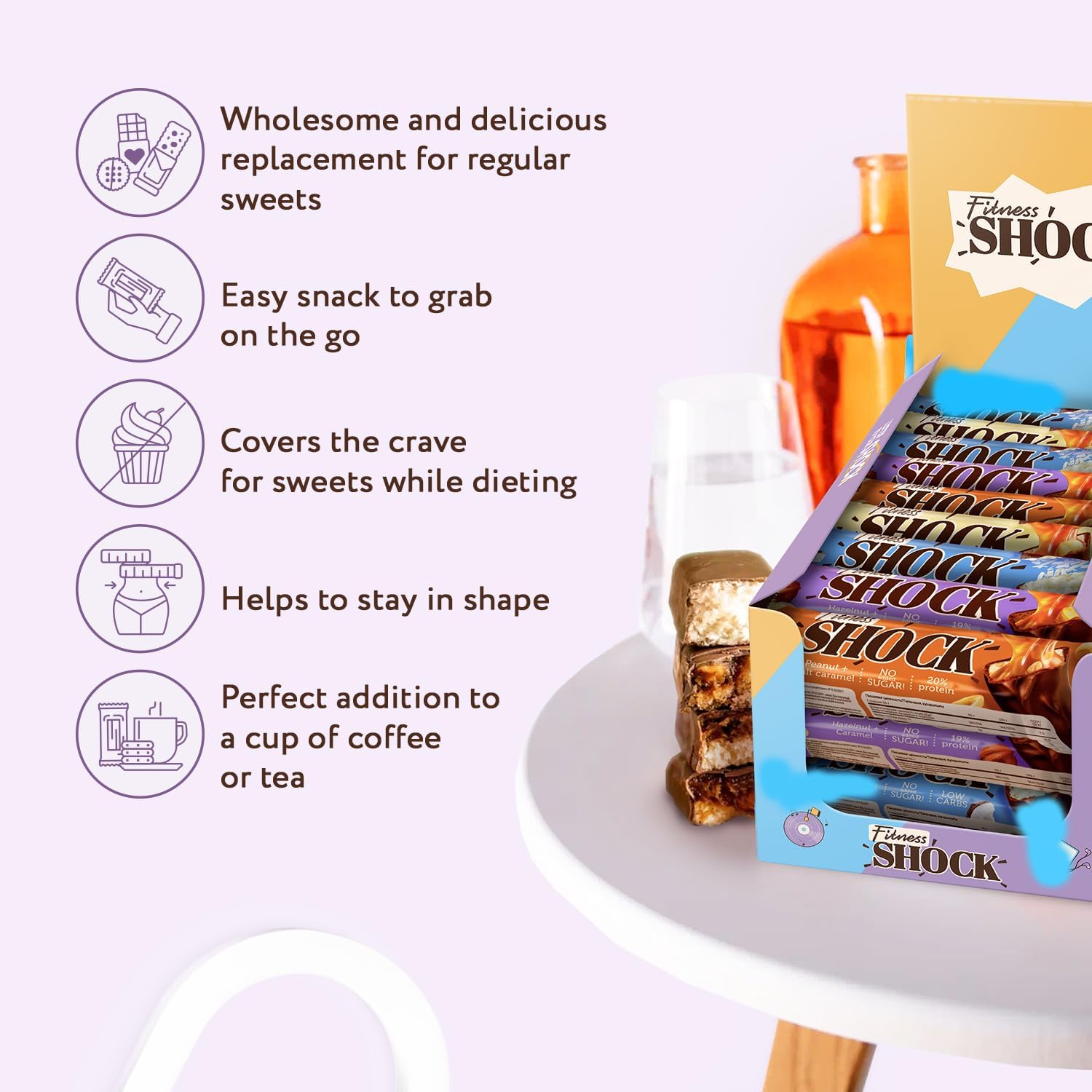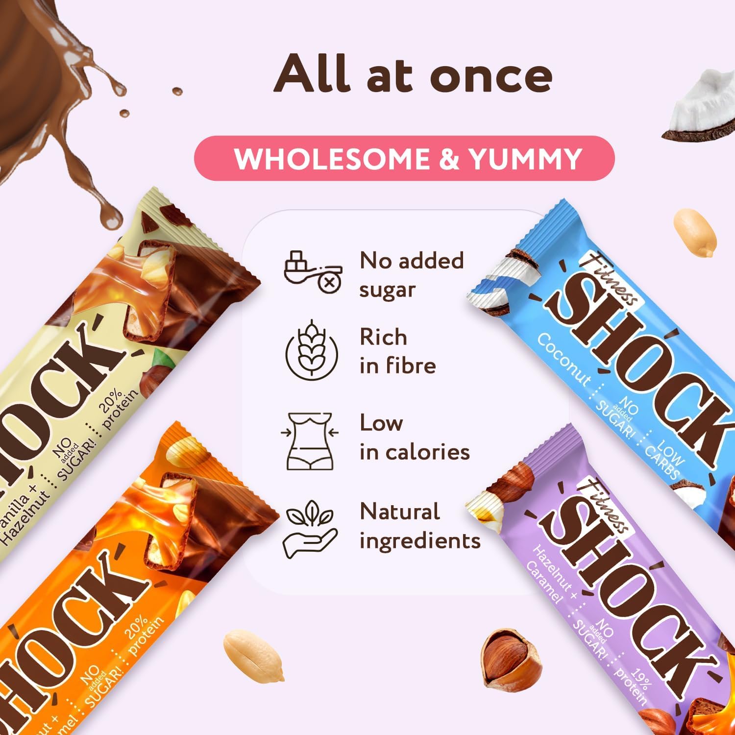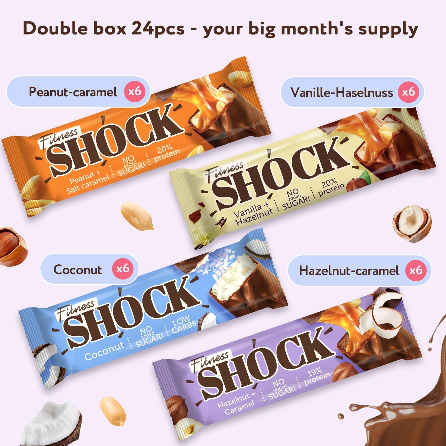 【Flash Sale】FitnesSHOCK Protein Bar Mix Box 24-Variety-Pack, No Added Sugar, High 20% Protein, Low Carb, Lower Calories, Rich in Fiber 24x50g