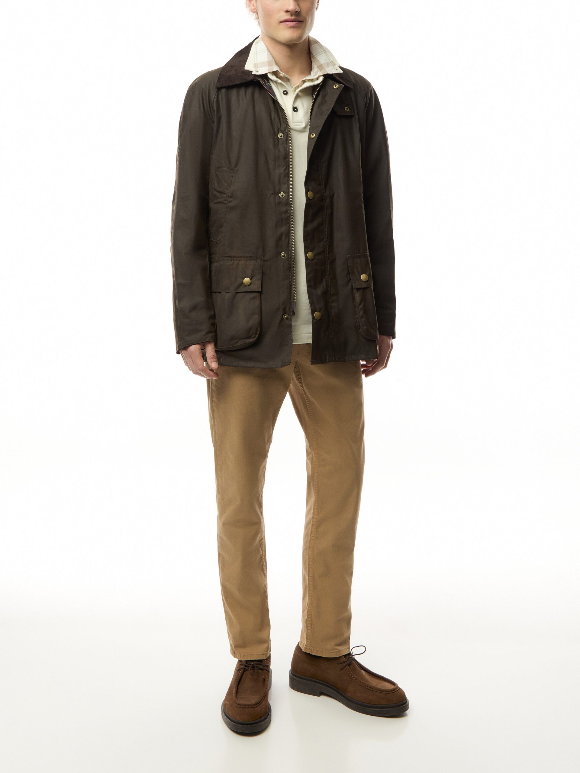 The Ashby Wax Jacket features long sleeves. a button closure. and a collared design. Stay comfortable while keeping warm in this classic jacket. Ideal for outdoor activities or everyday wear.