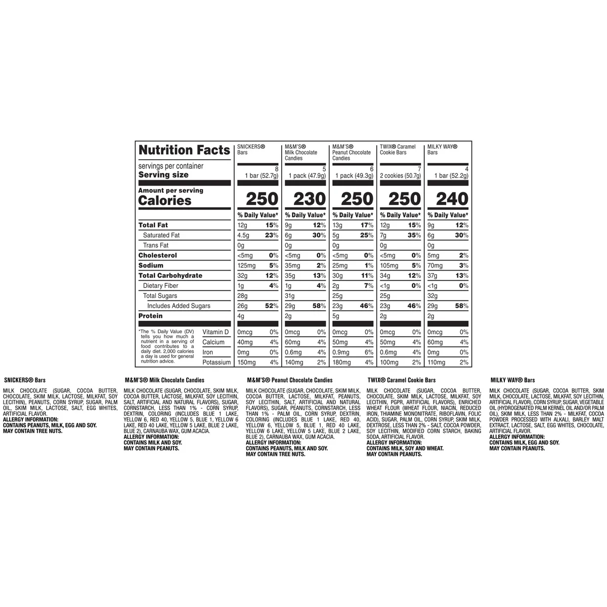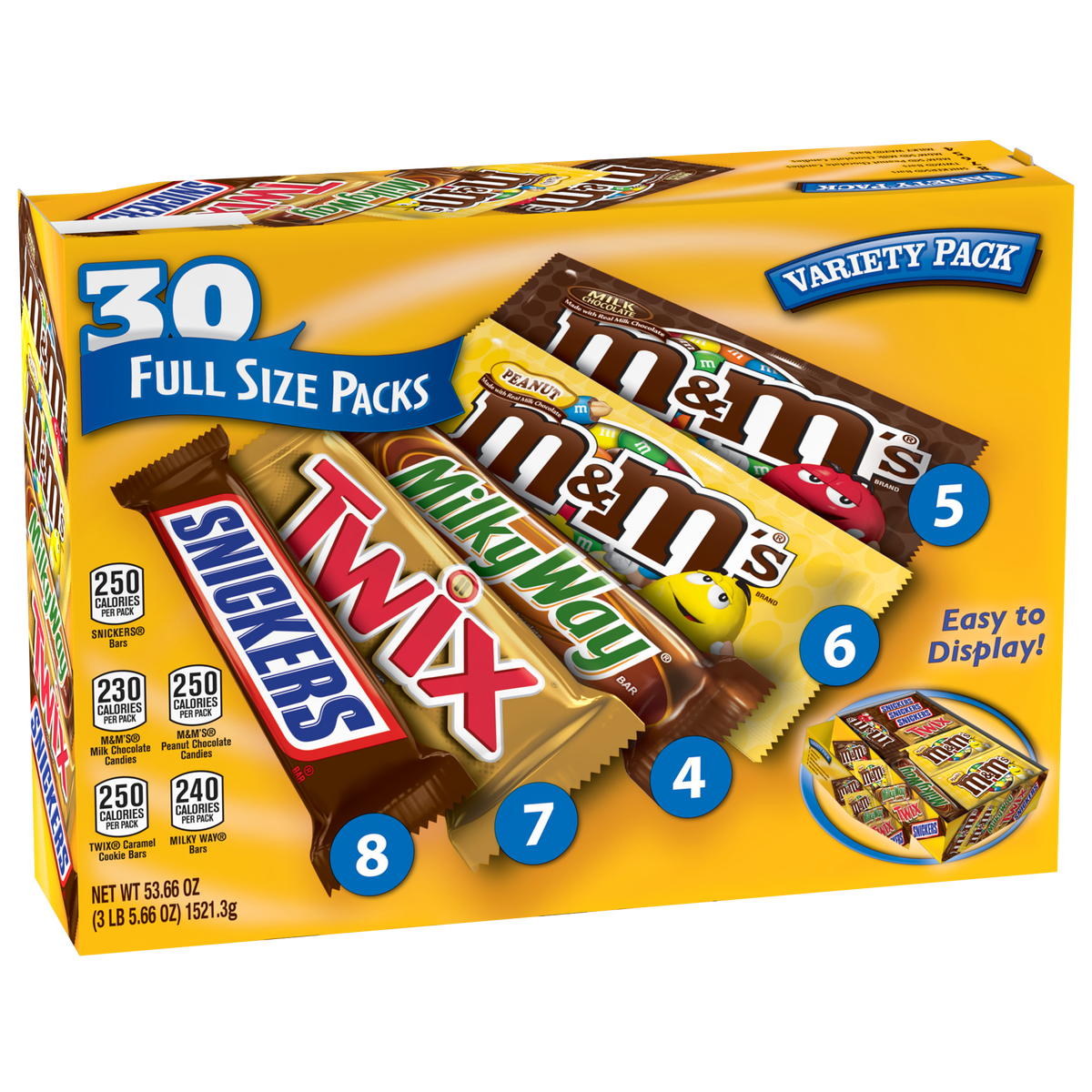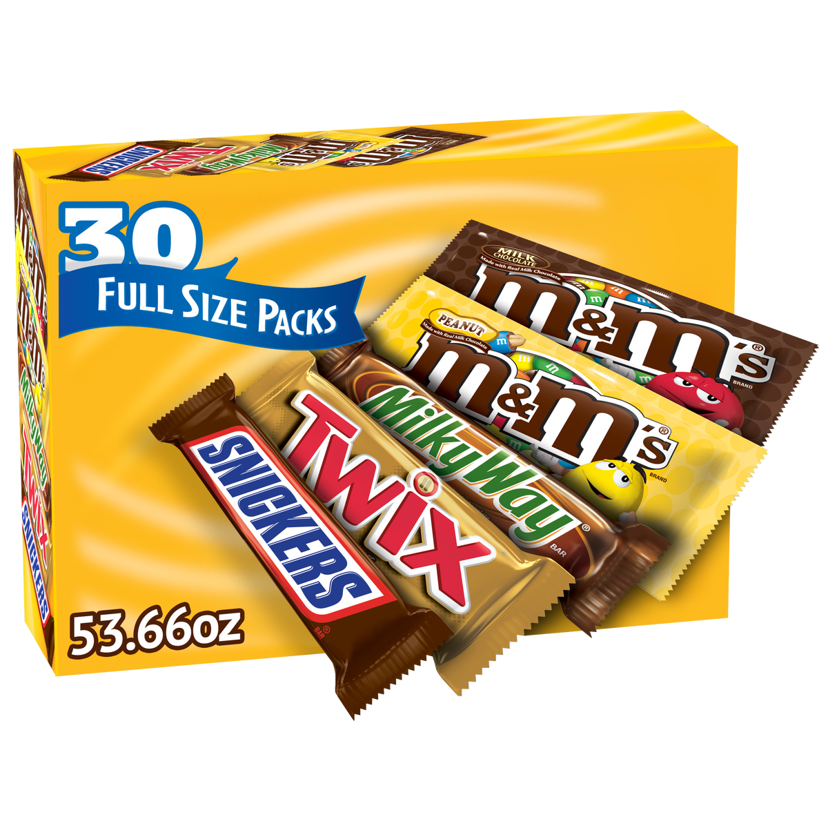 Mars 30ct Full Size Candy Variety Pack, 53.66 Ounce, 8 x Snickers Bars, 7 x Twix Bars, 6 x M&M’S Peanut, 5 x M&M’S Milk Chocolate, 4 x Milky Way Bars