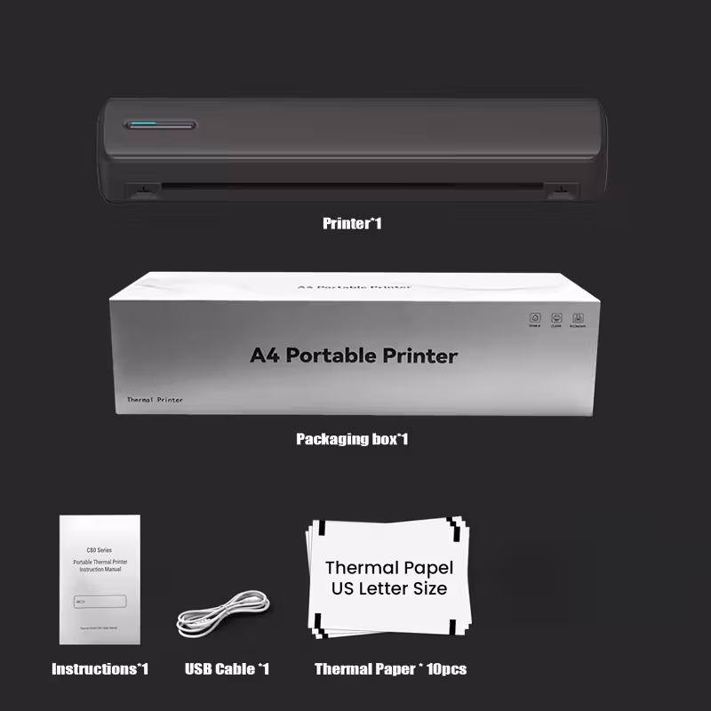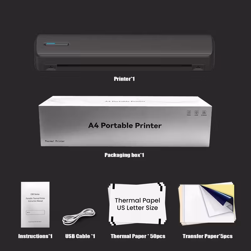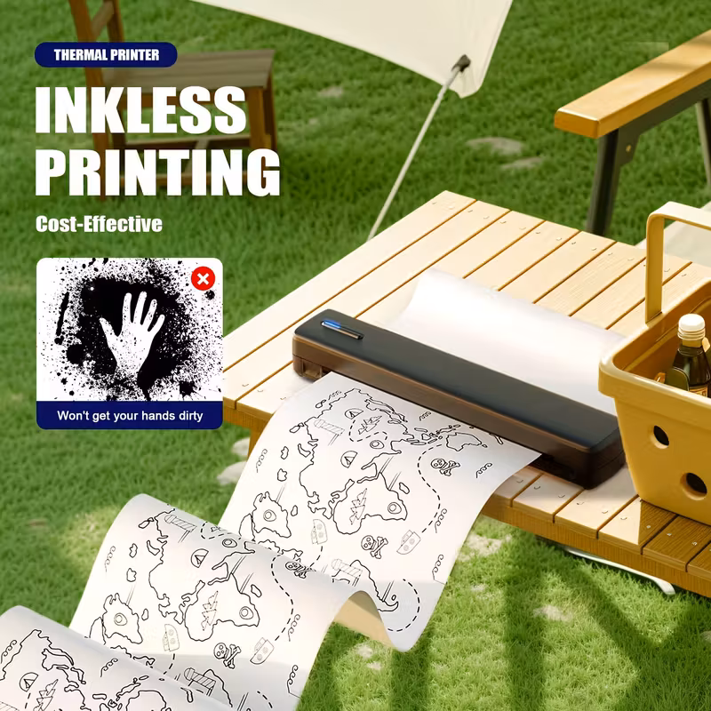Portable A4 Wireless Thermal Printer – No Ink, USB Rechargeable, Compatible with iOS & Android